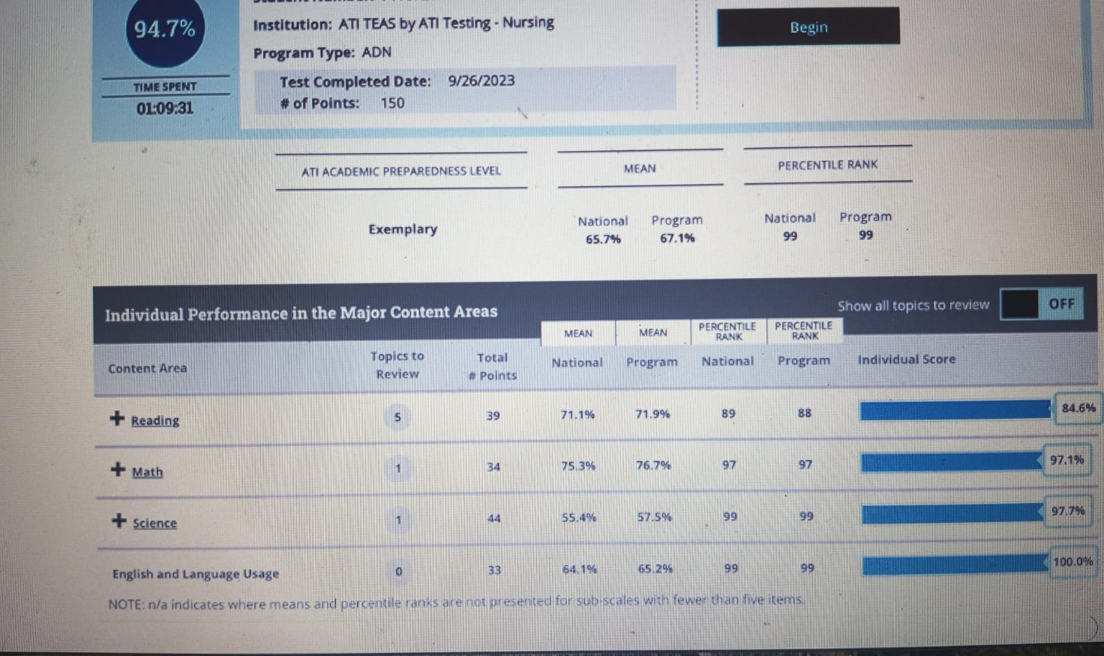 - Testing of essential academic skills (TEAS)